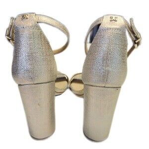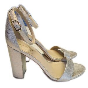Sam Edelman 4" Column Heel Sandals, Gold Silver Shiny Faux Leather, 9.5