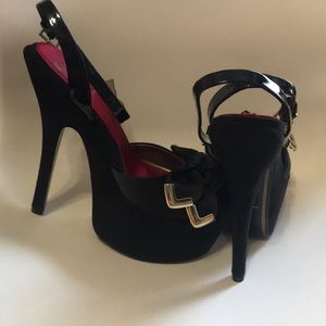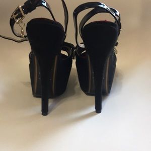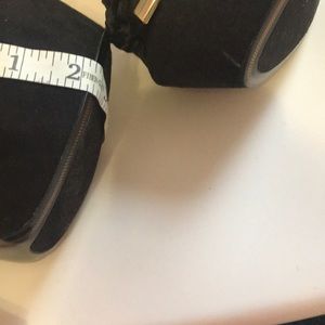Beautiful Sam Edelman heels if you are not afraid of making a statement this is the shoe for you. I will say this is one of the most comfortable platform shoes I’ve ever own. This shoes is made Suede and fabric. The colors is black. Black suede and patten leather.
