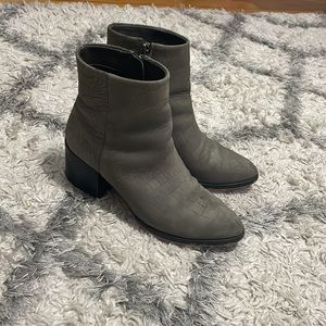 Size 6, about 2” heel. Very comfortable. Haven’t been worn in 2 years but look great with some skinny jeans or black pants.