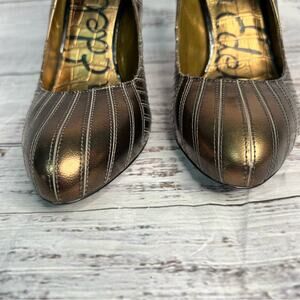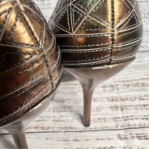 Sam Edelman 7.5 Tessa Laser Etched Heel Bronze High Heels 4"