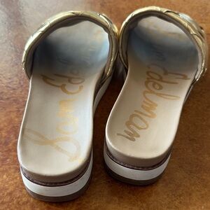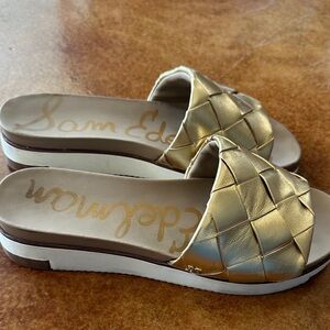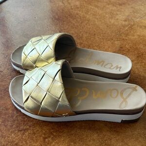 Beautiful gold woven style slides with comfy bottom. Size 8.5, good used condition
