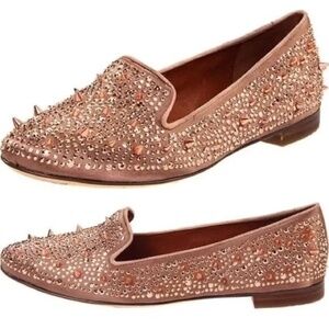 Sam Edelman Adena Studded Satin Loafers Flats Rose Gold Spike