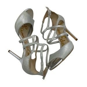 Sam Edelman Aeryn Leather Sandal Silver Strappy Stiletto Heels Women Size 9