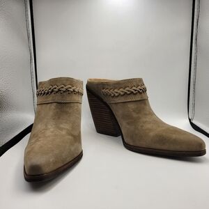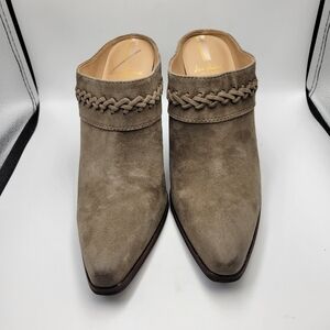 Sam Edelman Alison Desert Olive Suede Stacked Heel Mules Sz 9