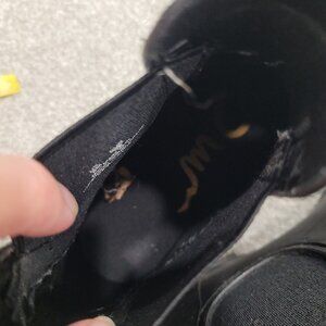 Black rain Chelsea rubber Sam leather Edelman shoes 8M heel pull on booties Tinsley boots fall autumn goblincore cottagecore cottage peasant prairie western country