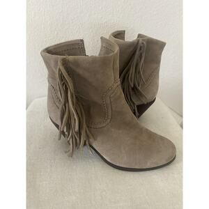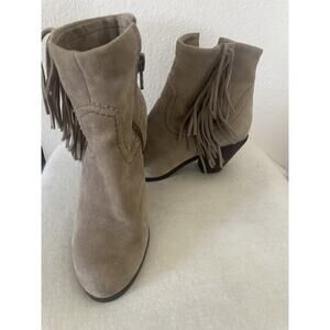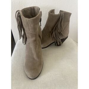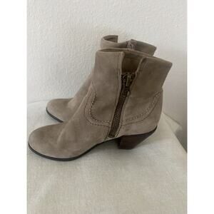 Sam Edelman Ankle Bootie Boots Womens Size 6.5 Beige Heels Side Zip Up Suede