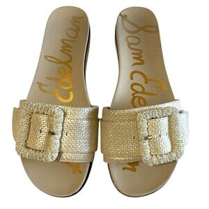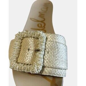 Sam Edelman Ariane Pearl Studded Beaded Buckle Woven Slide Beige Sandals Sz 8.5