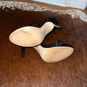 Black suede stiletto heel - super sexy!! I have a bad ankle so I can’t walk in them :(