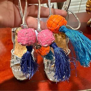 Adding a whimsical touch to the resort collective, these Azela sandals from Sam Edelman are detailed with knotted tassel pompoms at the front for recognisable bohemian attitude. Inherently chic with its gleaming mirror construction, this pair offers futuristic polish with comfortable height. 4.3" covered stiletto heel Metallic silver-tone mirror upper Criss-cross front band Cut-out counter Lace-up front with orange and pink knotted pompoms with multi-tonal blue tassels Exposed back zip fastening Fabric lining, padded insole, and synthetic outsole 100% Leather Upper / 100% Synthetic Sole Product measures: Heel 11cm (4.3") True to size