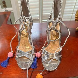 Sam Edelman Azela Silver Tassel Lace UP Leather Heel Size 8 NWOT