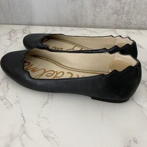 Sam Edelman Ballerina Flat Shoes Sz 8 Black Scalloped Minimalist Everyday Work