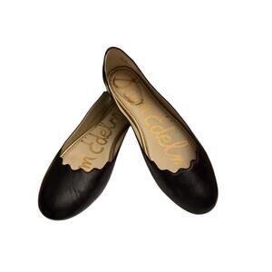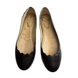 Sam Edelman Ballet Flats Womens 9.5 Black Leather Scalloped Finnegan Shoes