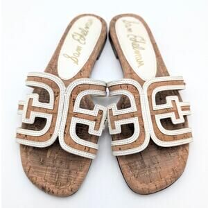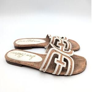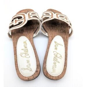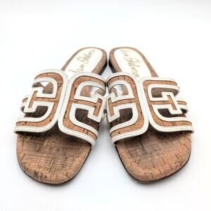 Sam Edelman Bay Fray Double E Logo Slide Sandals Natural Beige Cork Size US7.5M