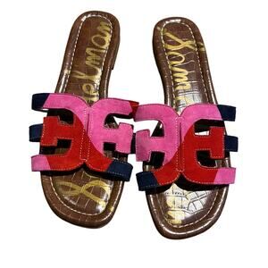 Sam Edelman Bay Slide Sandal – Colorblock Suede in Pink, Red & Navy -7.5
