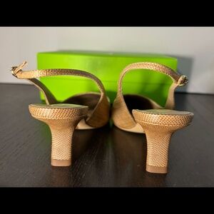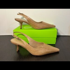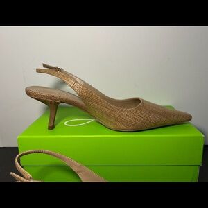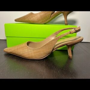 Sam Edelman Bianka Slingback Pointed Toe Pump Buff Tan Raffia Womans 8