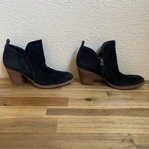 Brand: Sam Edelman, Size: 7 1/2 Color: Black, Side zipper closure, Approx. 3" heel, Factory distressed suede, Gently used condition.