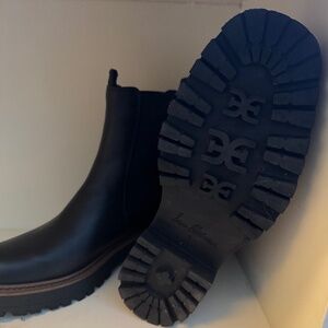 Stylish black ankle boots with chunky sole. Perfect for any occasion.