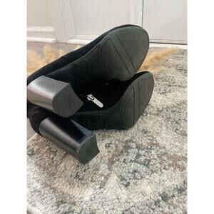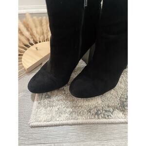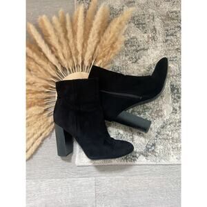 Elegant black ankle boots. Sleek design with a high block heel. Perfect for any occasion.