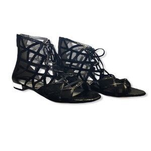 Features: Caging, Open Toe, Back Zippers, Textured