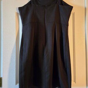 This is a perfect little black dress to wear for many occasions. You can dress it up with jewelry or have it more casual with a jean jacket. It has adjustable spaghetti straps and a clasp/zipper enclosure in the back. There is also faux pockets in the front of the dress. It is approximately 26 inches measuring the side inseam from top to bottom.