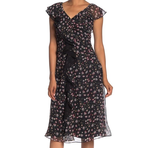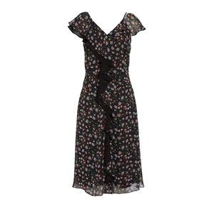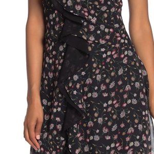Sam Edelman Black Floral V-Neck Ruffled Midi Dress Size 4