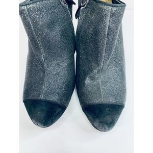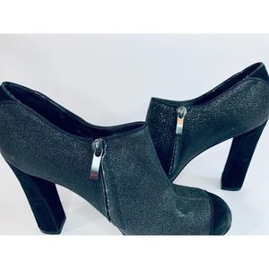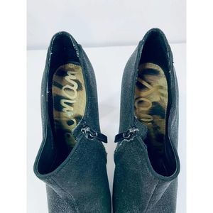 Sam Edelman Black Glitter Sparkly Chunky Heel Zip Close Ankle Boot Shoe Heel Size 8m