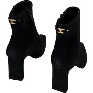 Elegant black heeled boots. Sleek design with a pointed toe. Perfect for any occasion. Never worn I needed a different size.