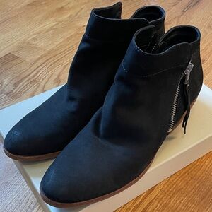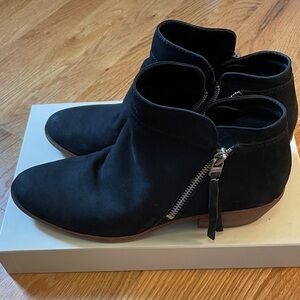 Stylish black heeled boots. Features side zipper. Perfect for any occasion.