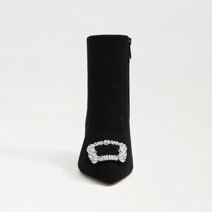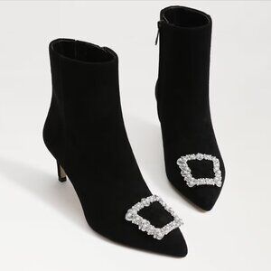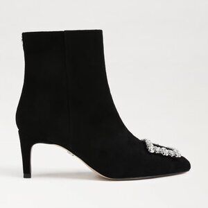 Sam Edelman Black Heels Booties Ulissa with Silver Buckle Pointed Toe Size 6.5