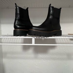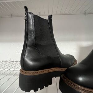 Bold black boots with durable lug sole. Ideal for rugged style. Worn once, in a very good condition. Sold as is.