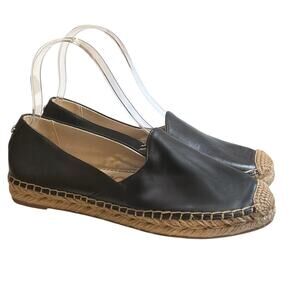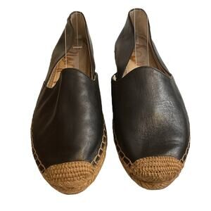 Sam Edelman Black Leather Espadrilles 7M Kesia Flats Slip-On Comfort Jute Sole
