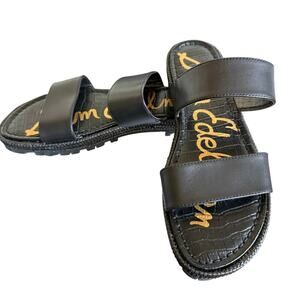 Sam Edelman Black Leather Lug Platform Sandals Chanel Inspired Size 7.5 NWOT