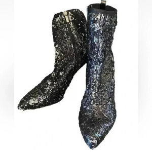 Sam Edelman Black Olson Galaxy Sequin Stiletto Sock Bootie Size 9.5 Sparkle