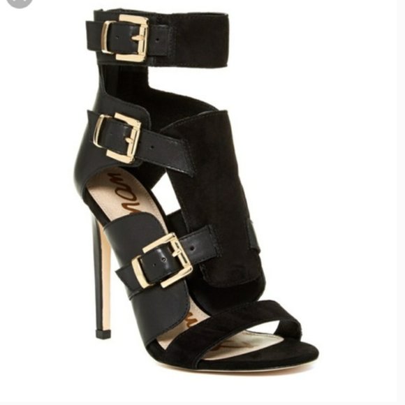 Sam Edelman Black Perth Zip-Up Strappy Gladiator Leather Stiletto Heels.