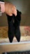 Chic black suede booties. Sleek design with subtle stitching. Ideal for versatile styling.