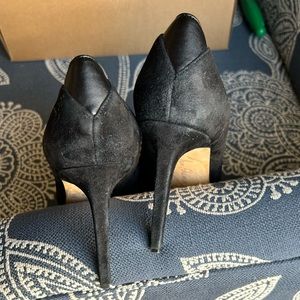 Good used condition, some wear on the bottom of shoes and tips. No wear noted in upper suede part of shoe or heels. Lots of wear left in these beauties. 3 1/2 - 4 inch heel.