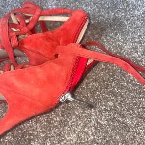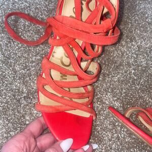Sam Edelman Black Suede Leather Strappy Back Zip Tie Heels tangerine orange 7.5