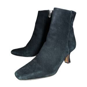 Sam Edelman Black Suede Square Toe Kitten Heel Lizzo Ankle Boots - 8.5