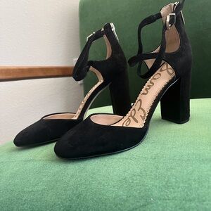Step out in style with these elegant black suede heels. Perfect for any occasion, these shoes offer both comfort and sophistication.