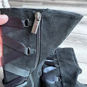 Sam Edelman Black Suede Tall Lace Up Boots - Size 2