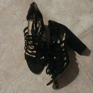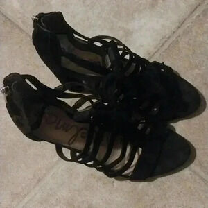 Sam Edelman Black Suede Yarina Heeled Lace up Heels Size 10