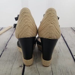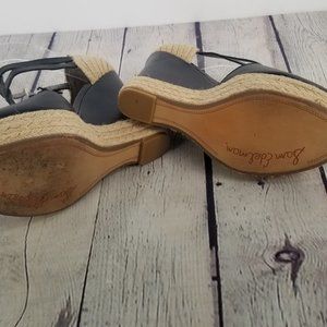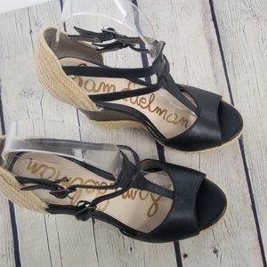 Sam Edelman Black T Strap, Stappy Woven Wedge