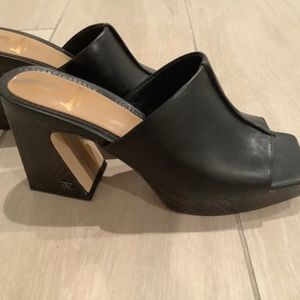 Brownish black snakeskin appearance to stylish chunky heel and platform