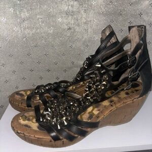 Sam Edelman Black Wedges with Silver & Gem Spiked Accents