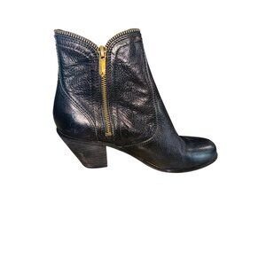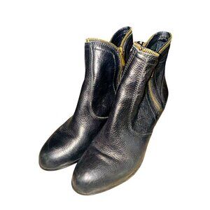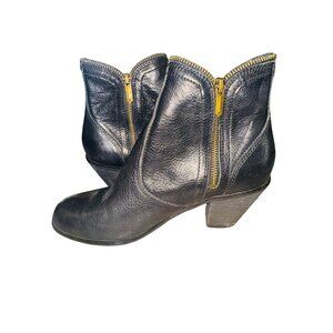 Sam Edelman Black Western Boho Leather Ankle Booties Zipper Block Heel Cowgirl