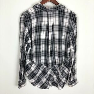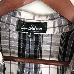 Sam Edelman Black White Plaid Button Front Shirt Women's Size Small Tab Sleeves