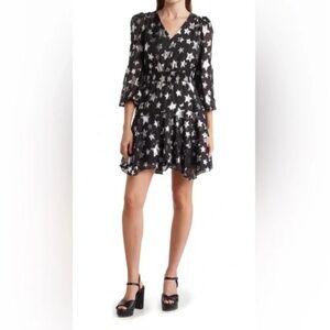 Sam Edelman Black and Silver Star Long Sleeve Dress