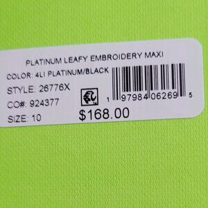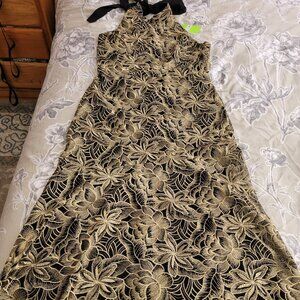 Sam Edelman Black with Platinum Leaf Maxi Dress Size 10 NWT