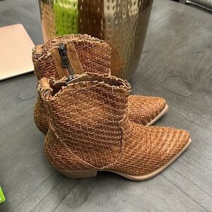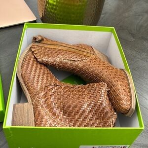 Sam Edelman Blair Cuoio Stacked Heel Pointed Toe Leather Woven Western boots