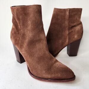 Sam Edelman Blake Brown Suede Ankle Boots Size 8M Block Heel Booties
